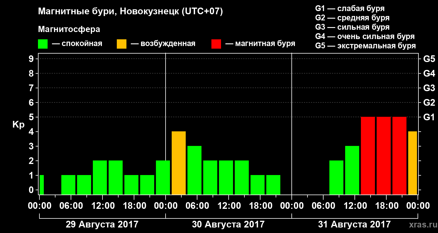 Магнитные бури в Новокузнецке 31 августа 2017 года