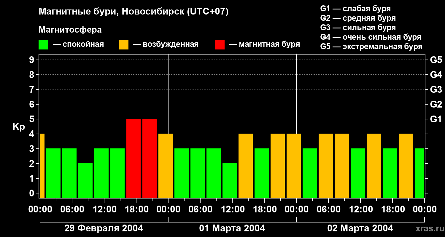 Магнитные бури в Новосибирске — 2 марта 2004 года
