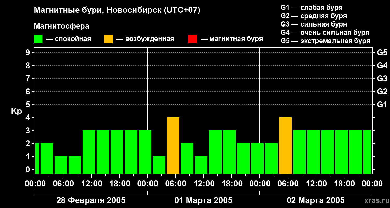 Магнитные бури в Новосибирске — 2 марта 2005 года