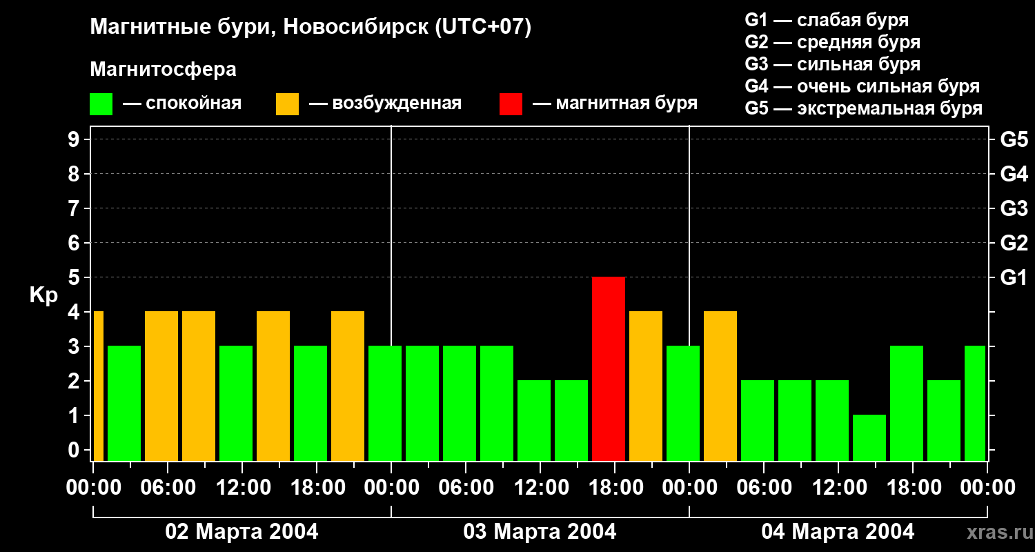 Магнитные бури в Новосибирске — 4 марта 2004 года