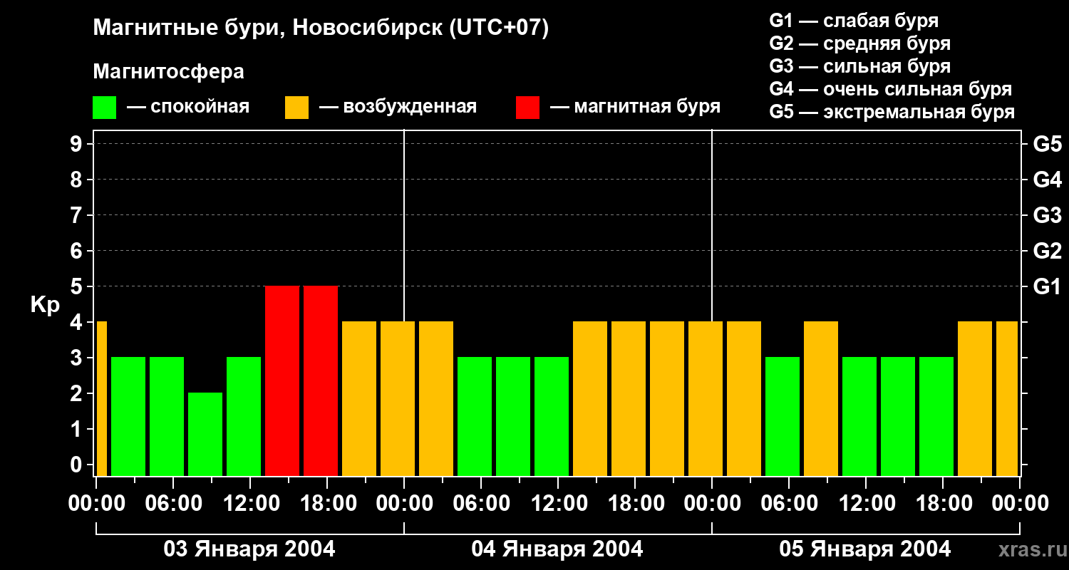 Магнитные бури в Новосибирске — 5 января 2004 года