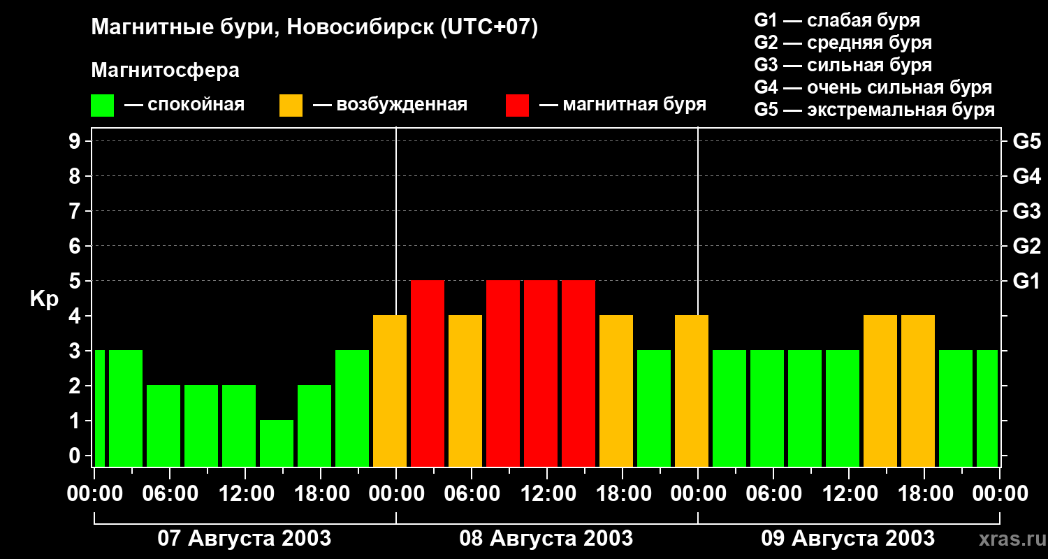 Магнитные бури в Новосибирске — 9 августа 2003 года