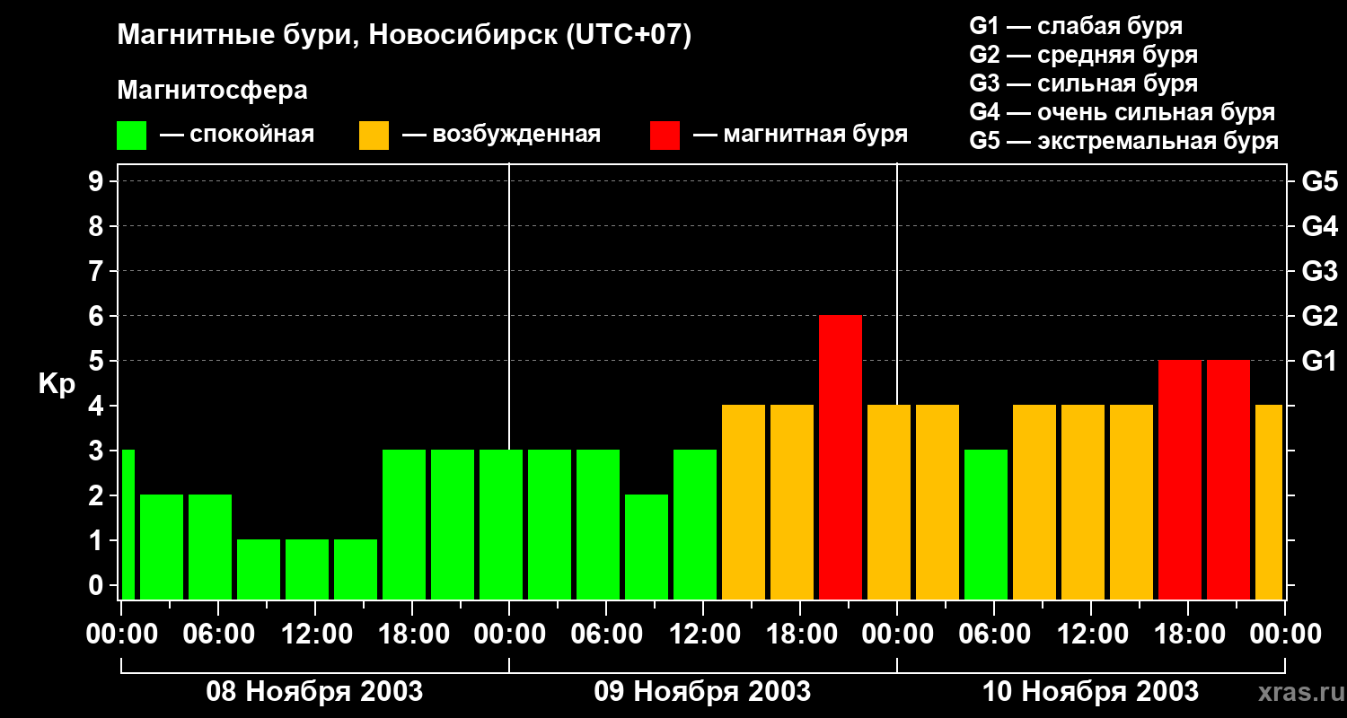 Магнитные бури в Новосибирске — 10 ноября 2003 года