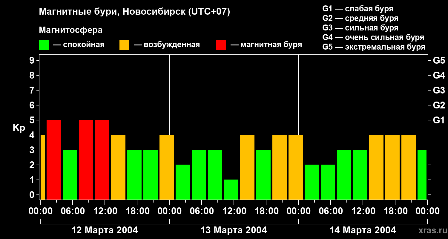 Магнитные бури в Новосибирске — 14 марта 2004 года