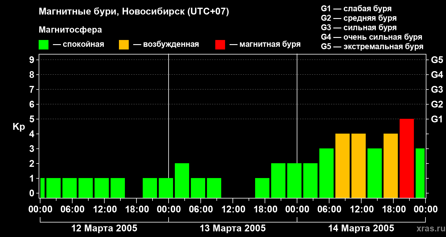 Магнитные бури в Новосибирске — 14 марта 2005 года