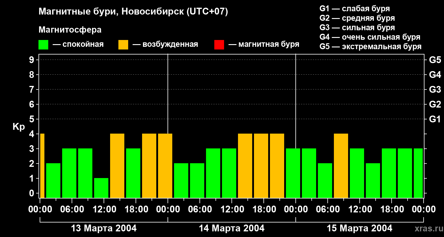 Магнитные бури в Новосибирске — 15 марта 2004 года