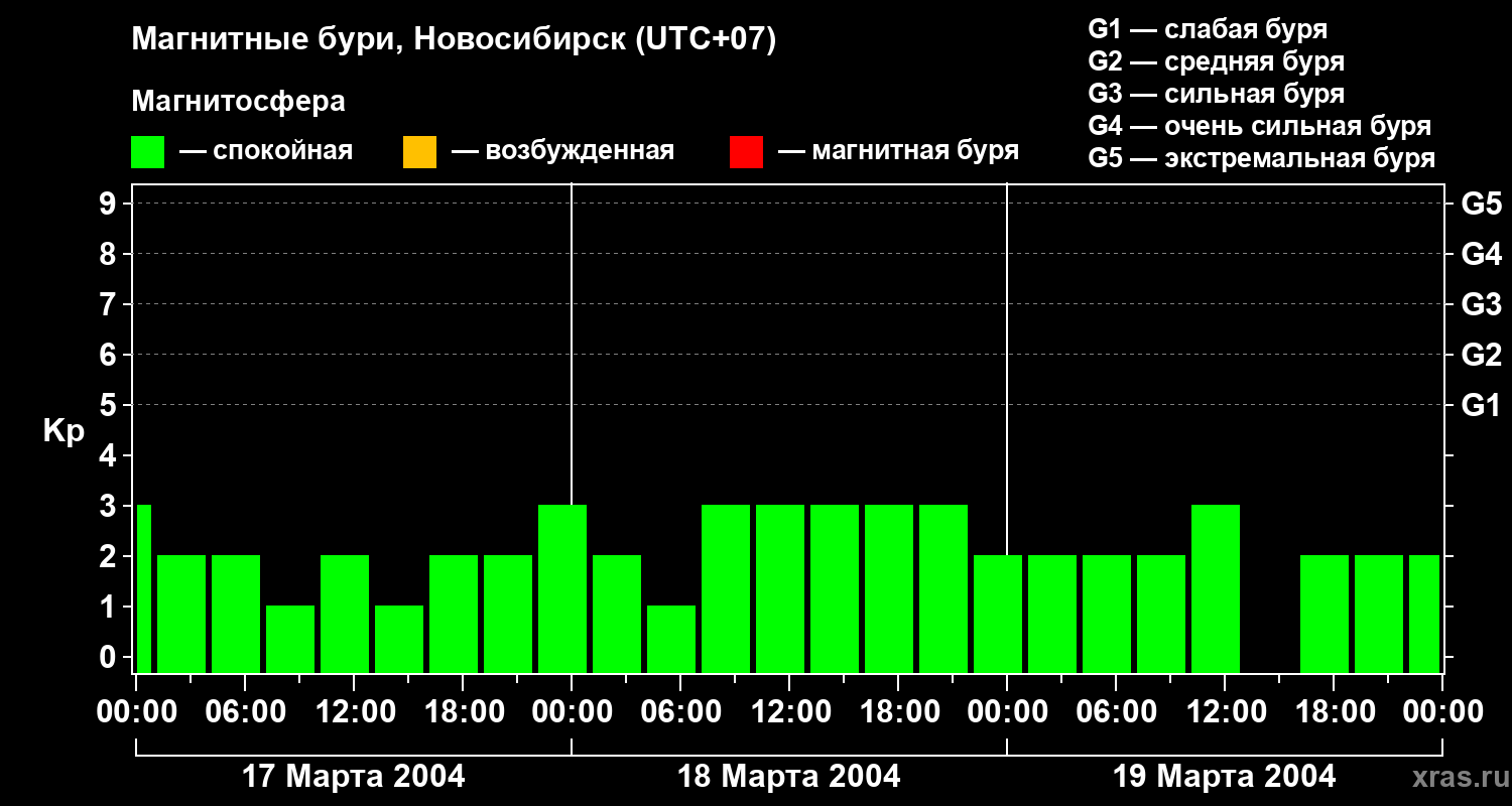 Магнитные бури в Новосибирске — 19 марта 2004 года