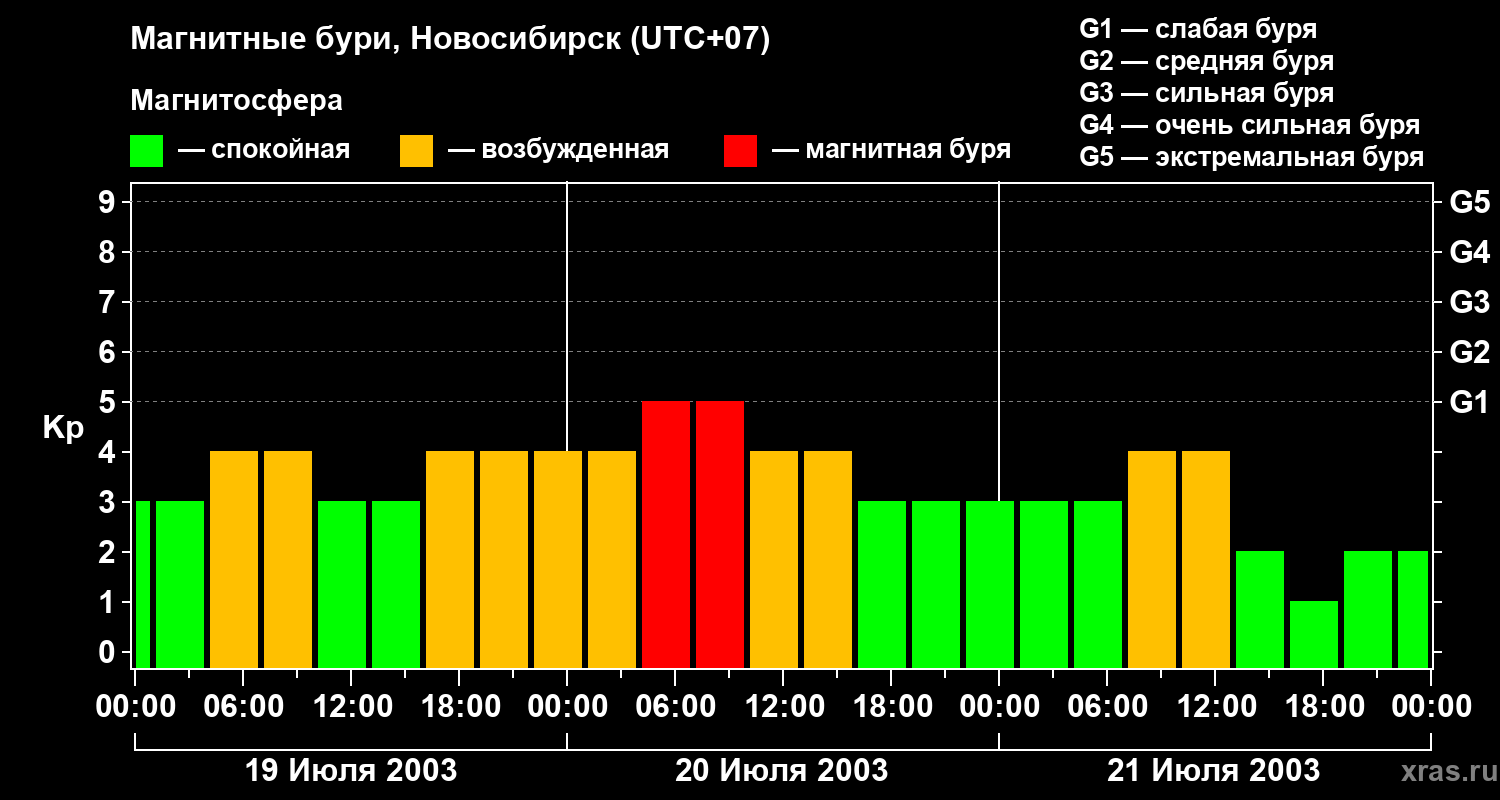 Магнитные бури в Новосибирске — 21 июля 2003 года
