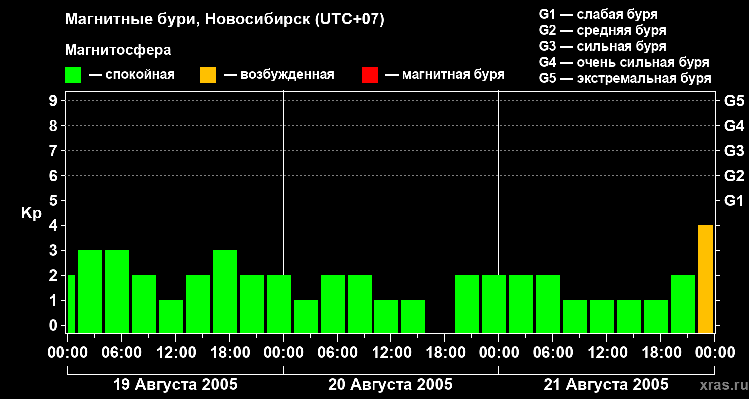 Магнитные бури в Новосибирске — 21 августа 2005 года