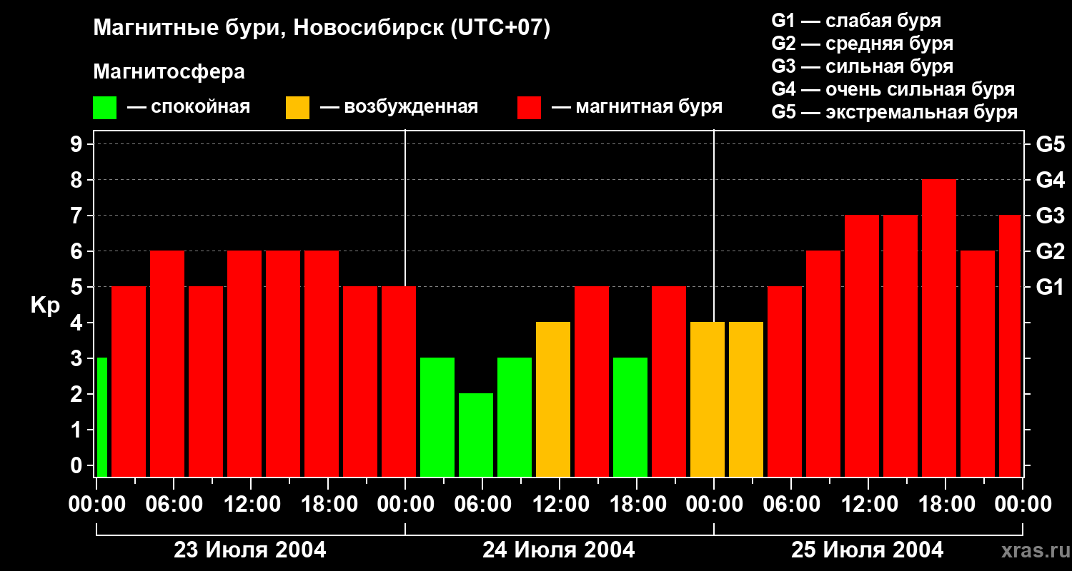 Магнитные бури в Новосибирске — 25 июля 2004 года