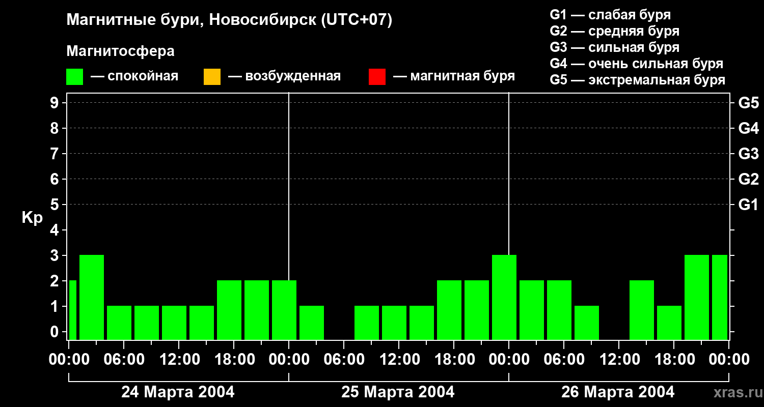 Магнитные бури в Новосибирске — 26 марта 2004 года