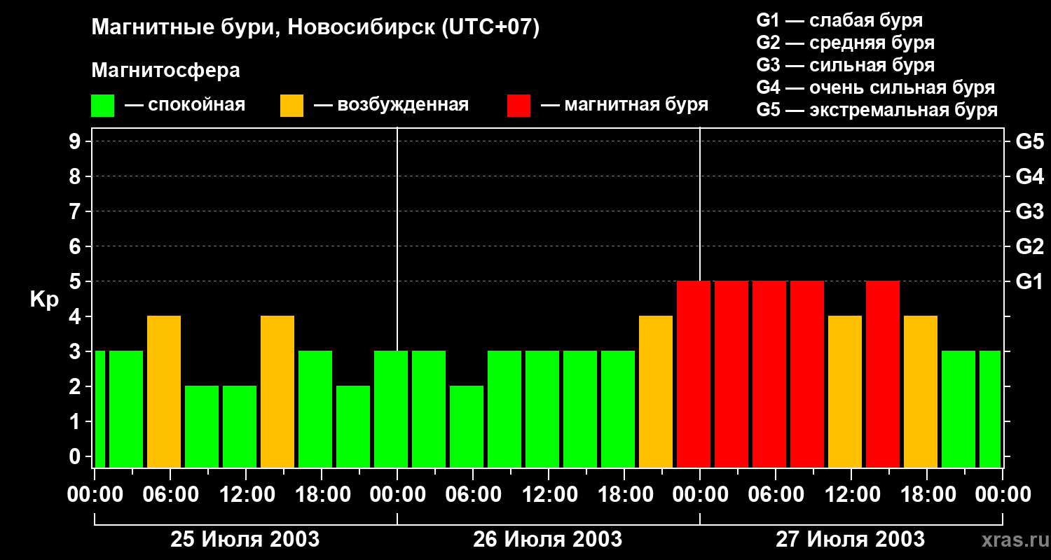 Магнитные бури в Новосибирске — 27 июля 2003 года