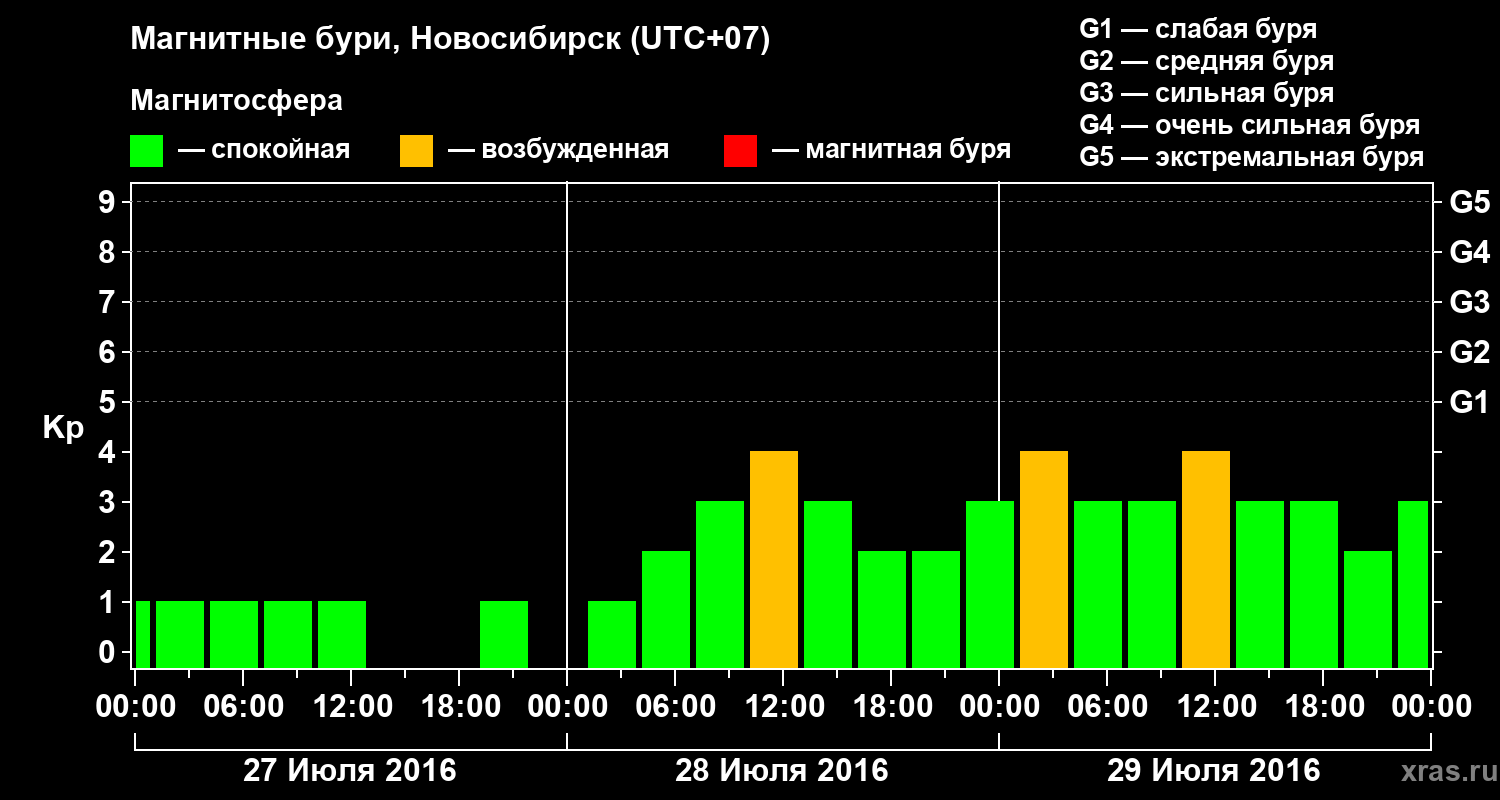 Магнитные бури в Новосибирске 29 июля 2016 года
