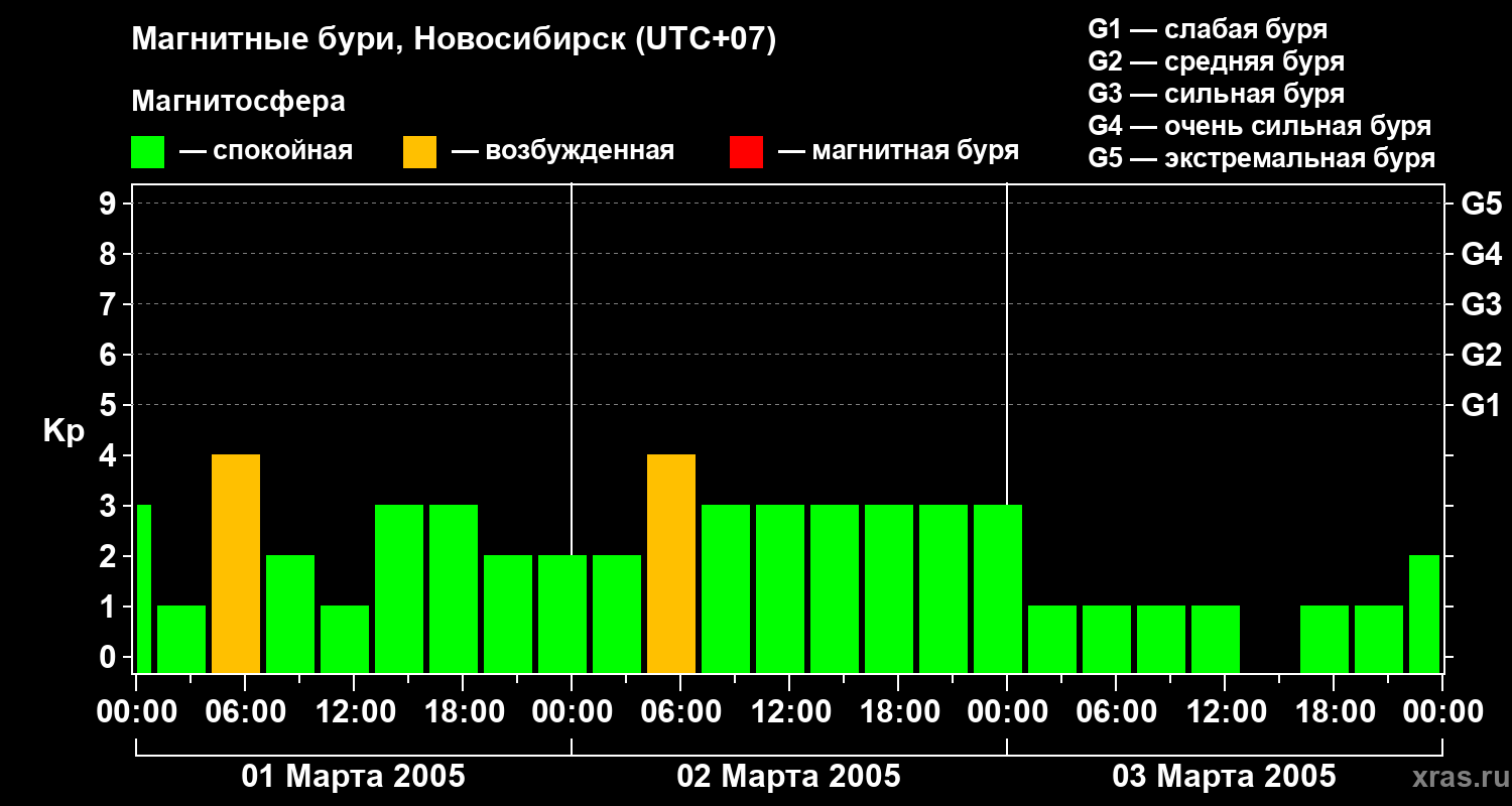 Магнитные бури в Новосибирске — 3 марта 2005 года