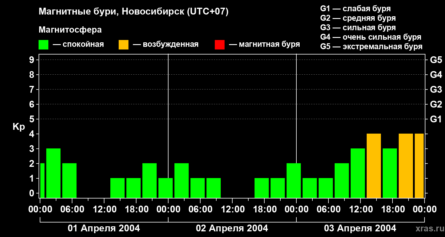 Магнитные бури в Новосибирске — 3 апреля 2004 года
