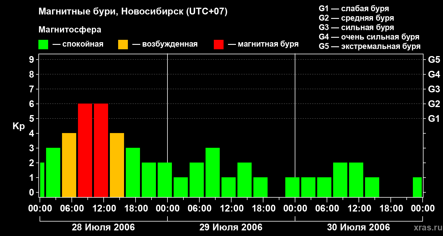 Магнитные бури в Новосибирске — 30 июля 2006 года