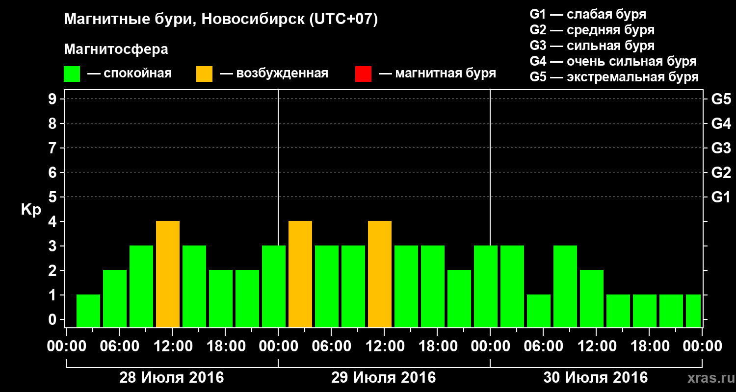 Магнитные бури в Новосибирске 30 июля 2016 года