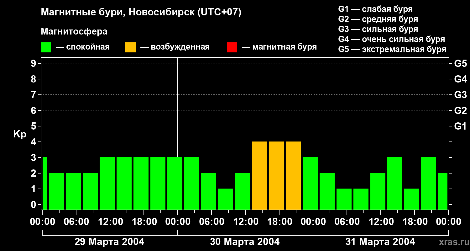 Магнитные бури в Новосибирске — 31 марта 2004 года