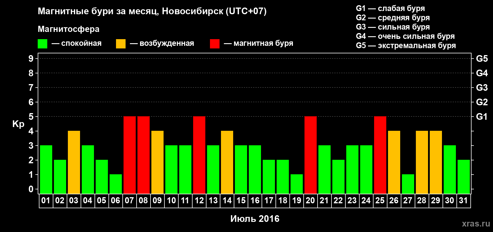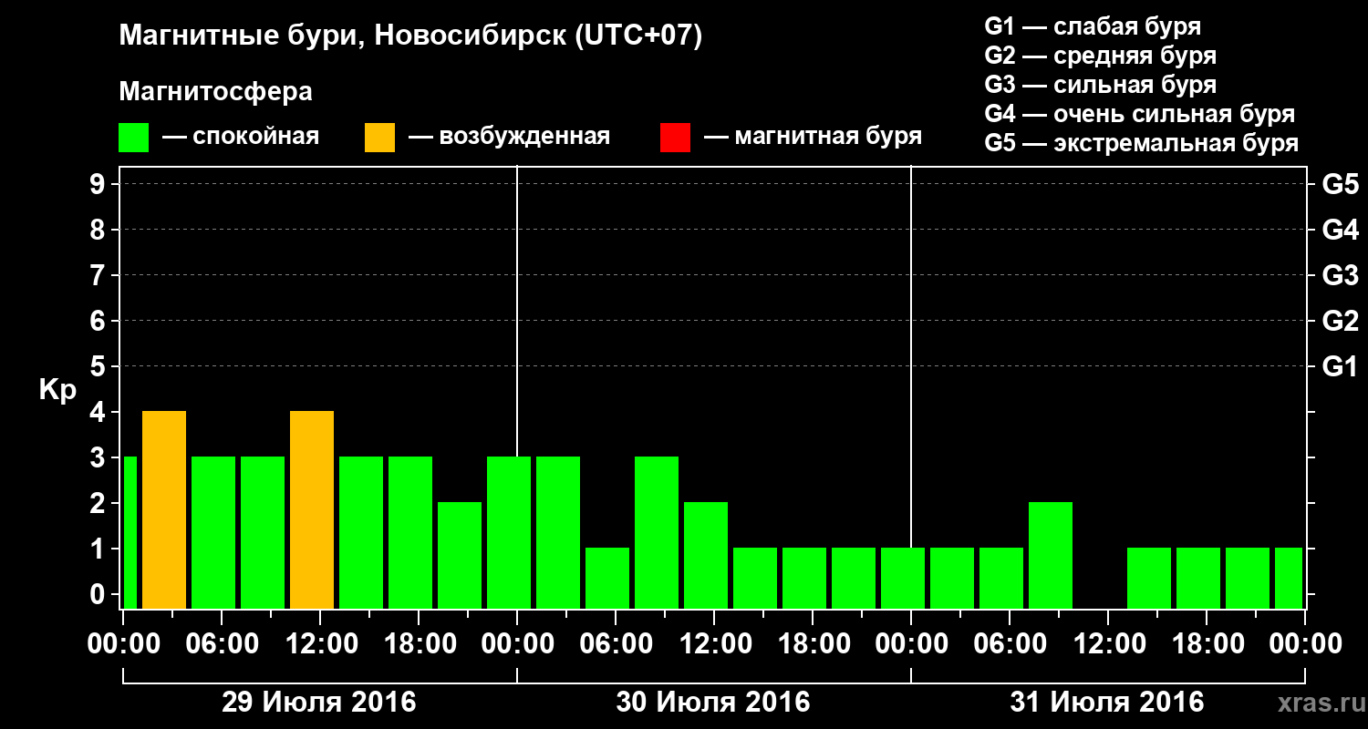 Магнитные бури в Новосибирске 31 июля 2016 года