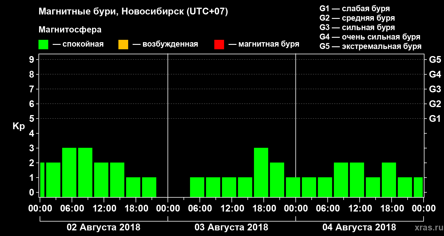 Магнитные бури в Новосибирске 4 августа 2018 года