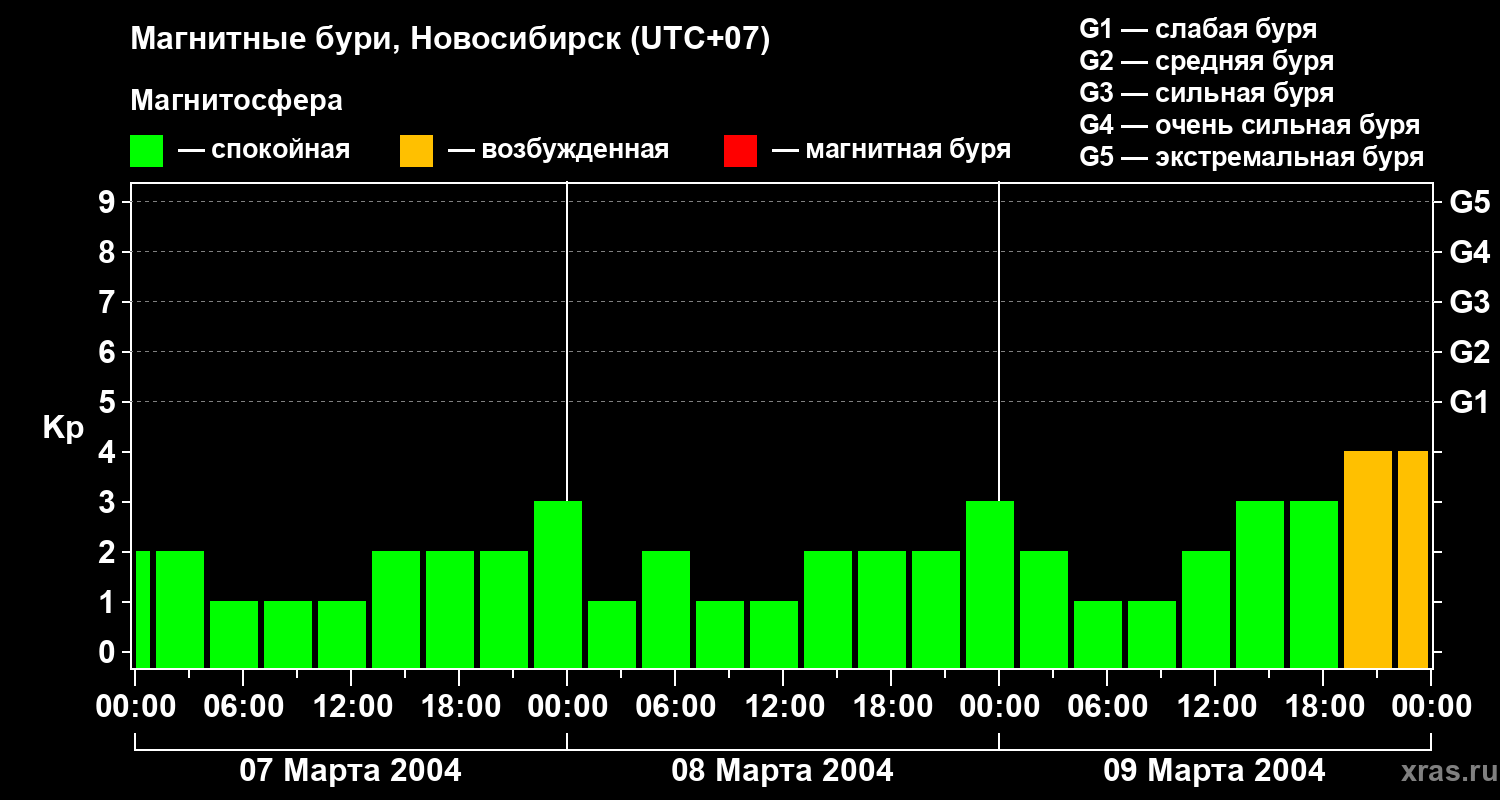 Магнитные бури в Новосибирске — 9 марта 2004 года