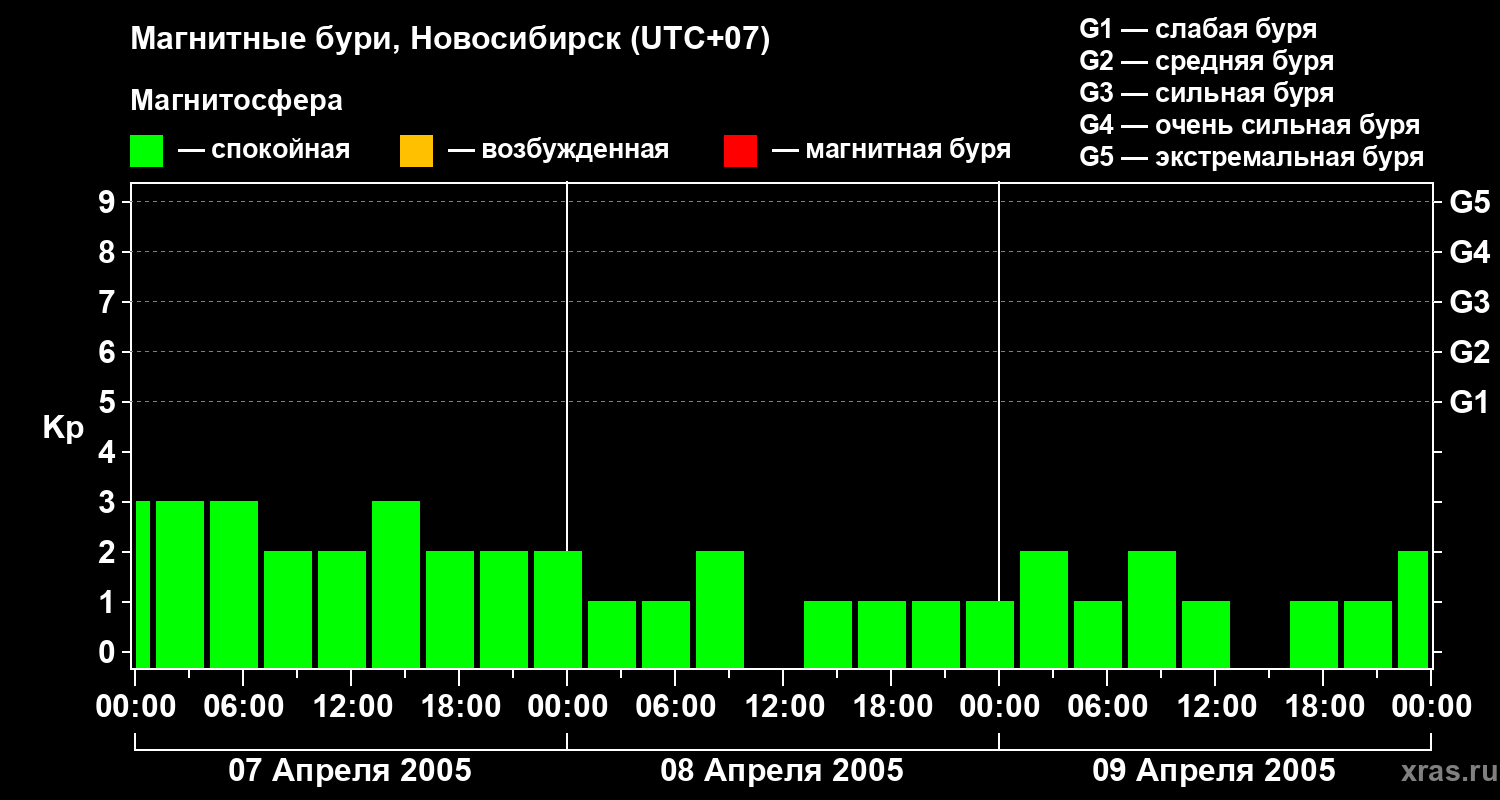 Магнитные бури в Новосибирске — 9 апреля 2005 года