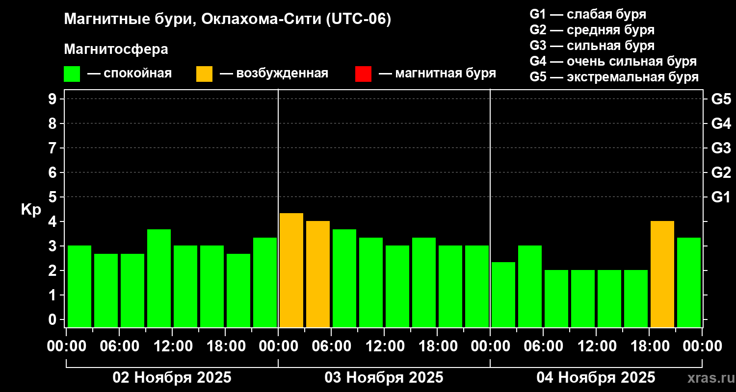 Магнитные бури Оклахома-Сити 4 ноября 2025 года