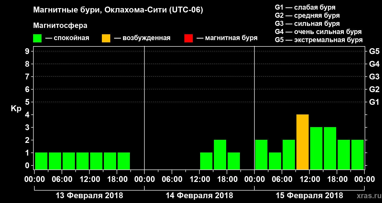 Магнитные бури Оклахома-Сити 15 февраля 2018 года