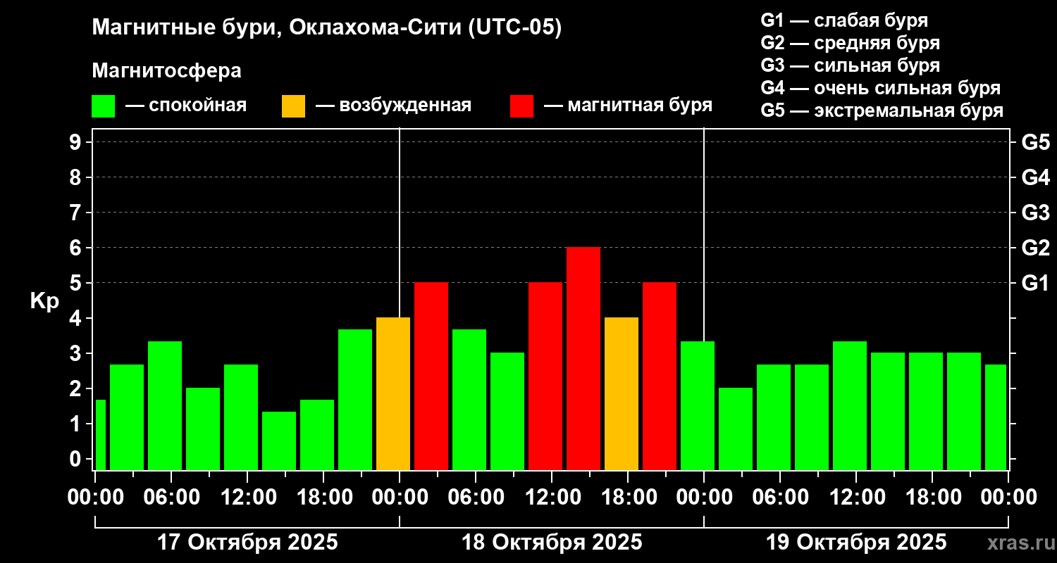 Магнитные бури Оклахома-Сити 19 октября 2025 года