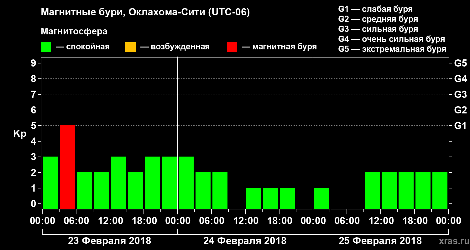 Магнитные бури Оклахома-Сити 25 февраля 2018 года