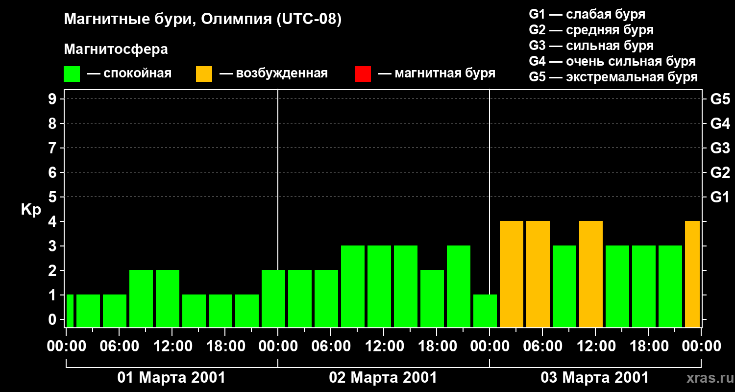 Магнитные бури в Олимпии — 3 марта 2001 года