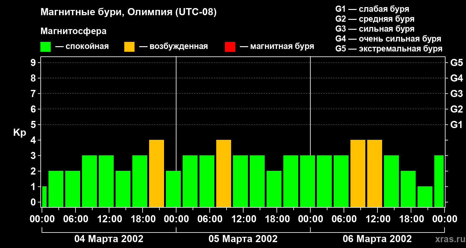 Магнитные бури в Олимпии — 6 марта 2002 года