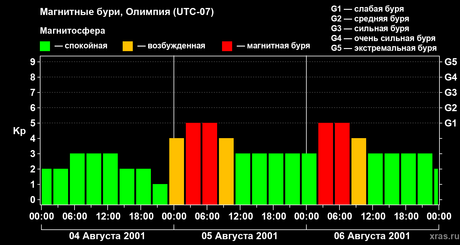 Магнитные бури в Олимпии — 6 августа 2001 года