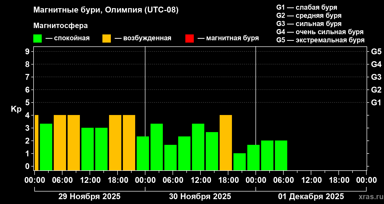 Магнитные бури в Олимпии 1 декабря 2025 года