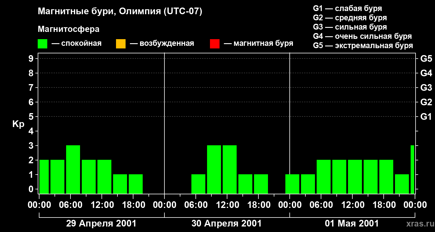 Магнитные бури в Олимпии — 1 мая 2001 года
