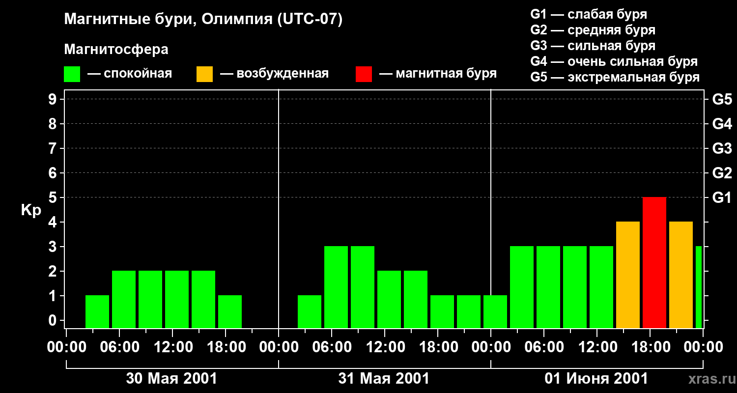 Магнитные бури в Олимпии 1 июня 2001 года