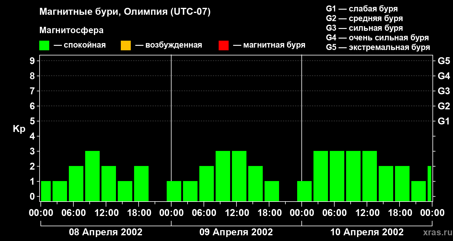 Магнитные бури в Олимпии — 10 апреля 2002 года