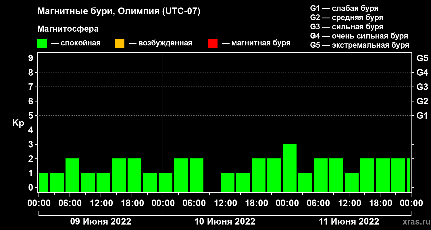 Магнитные бури в Олимпии 11 июня 2022 года
