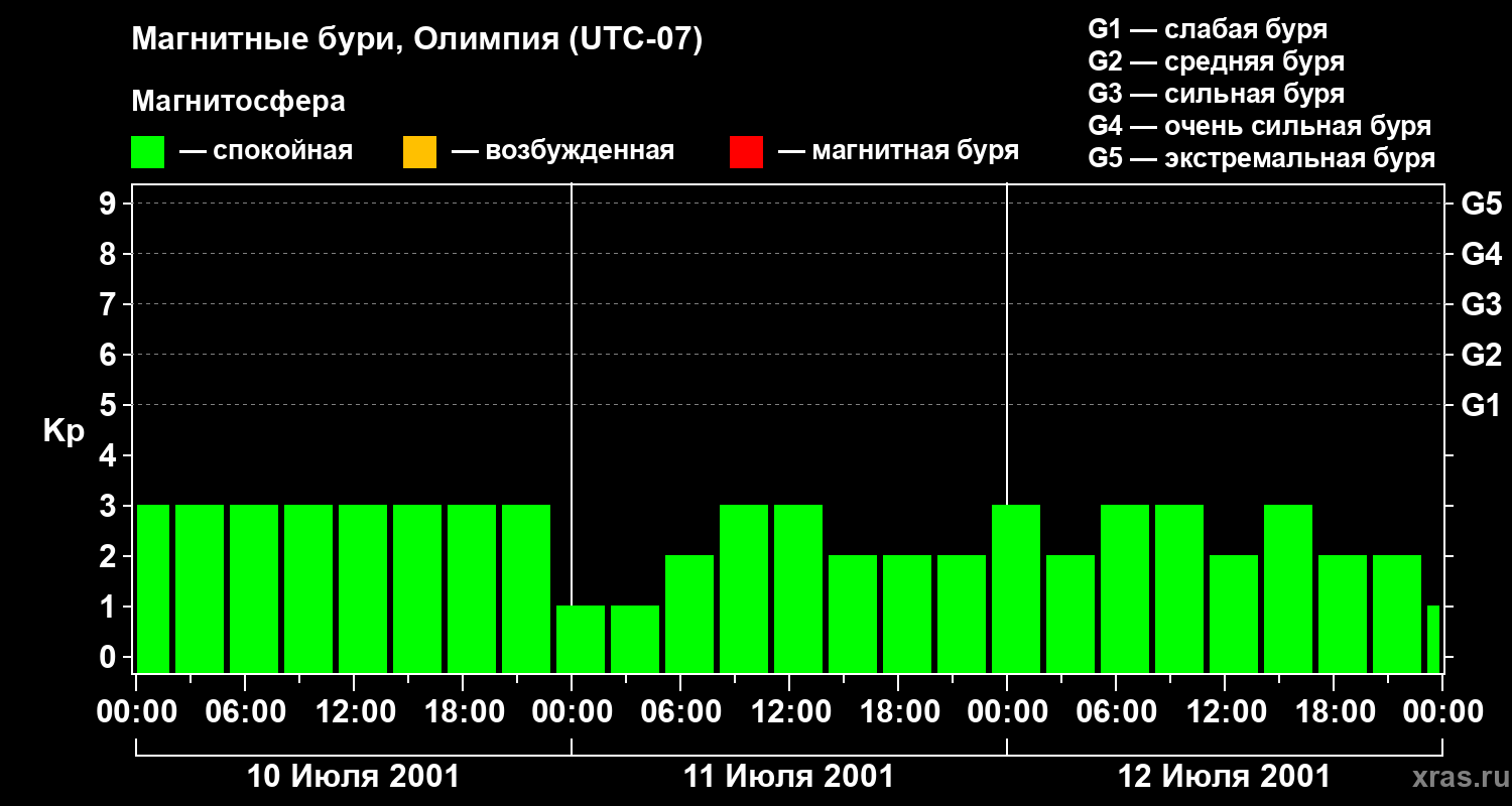 Магнитные бури в Олимпии — 12 июля 2001 года