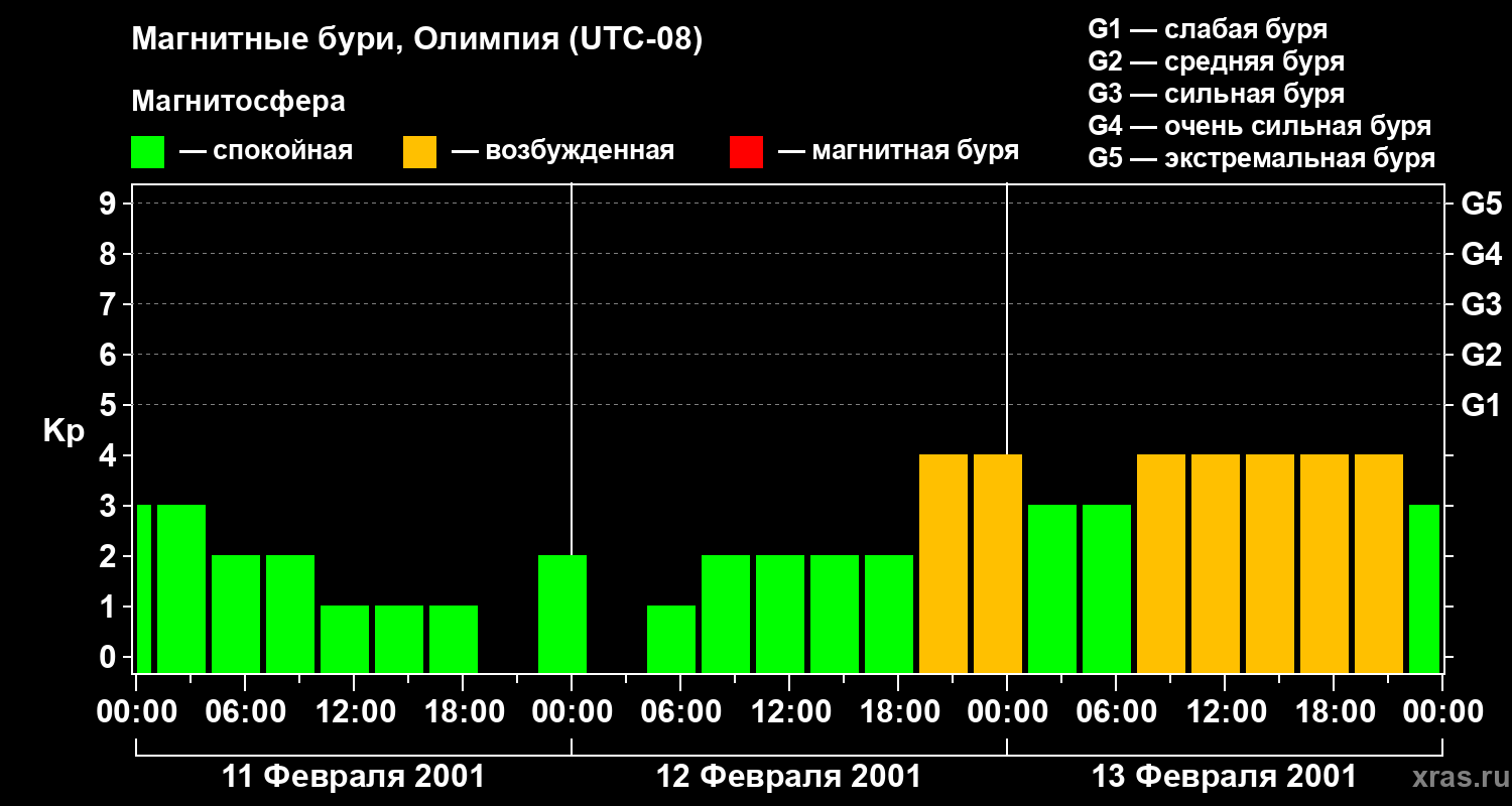 Магнитные бури в Олимпии — 13 февраля 2001 года