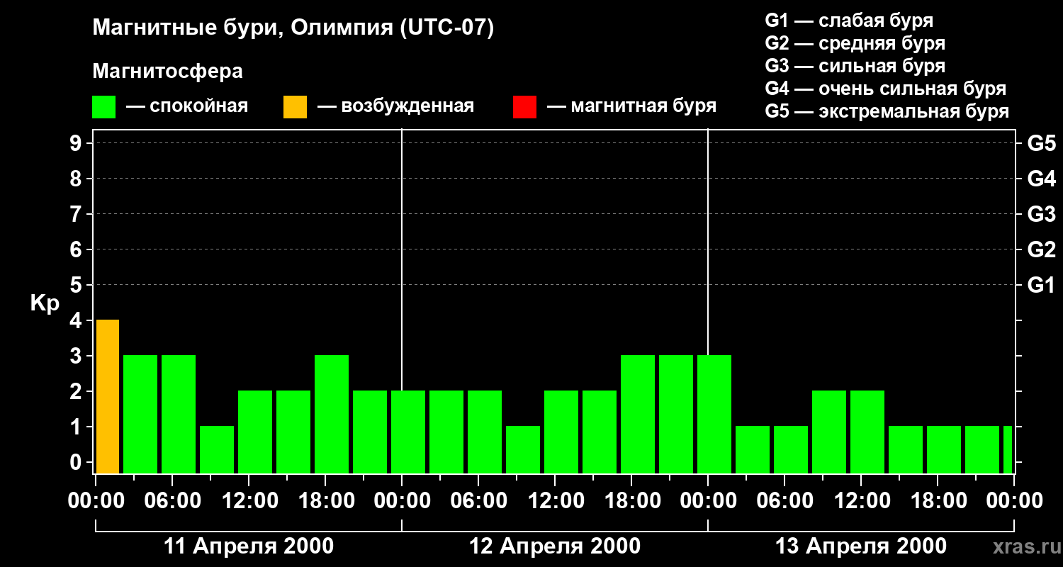 Магнитные бури в Олимпии — 13 апреля 2000 года