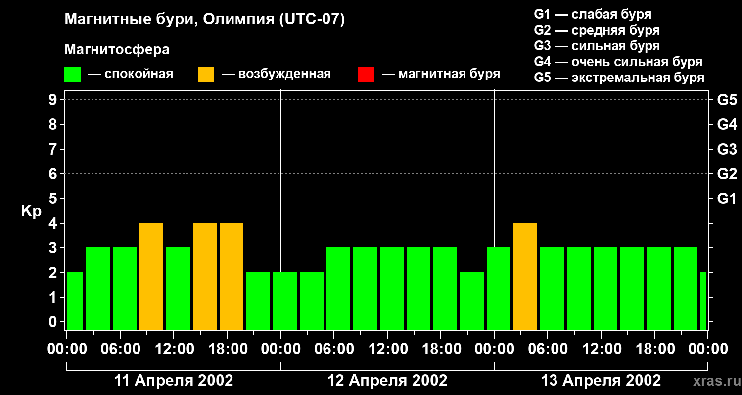 Магнитные бури в Олимпии — 13 апреля 2002 года