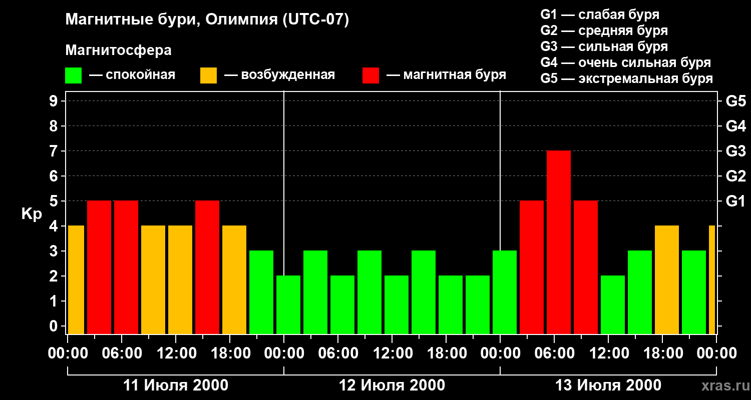 Магнитные бури в Олимпии — 13 июля 2000 года