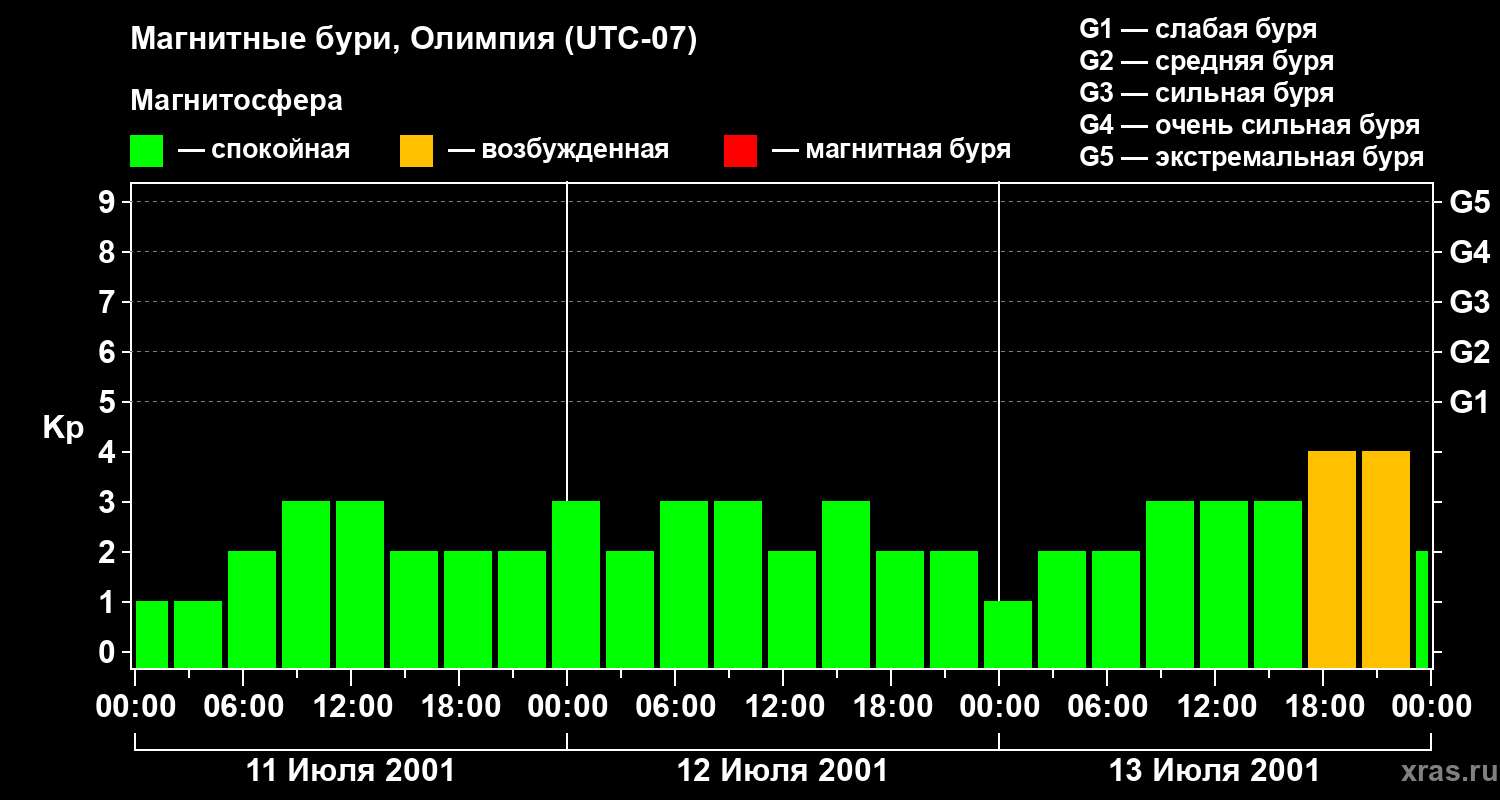 Магнитные бури в Олимпии — 13 июля 2001 года