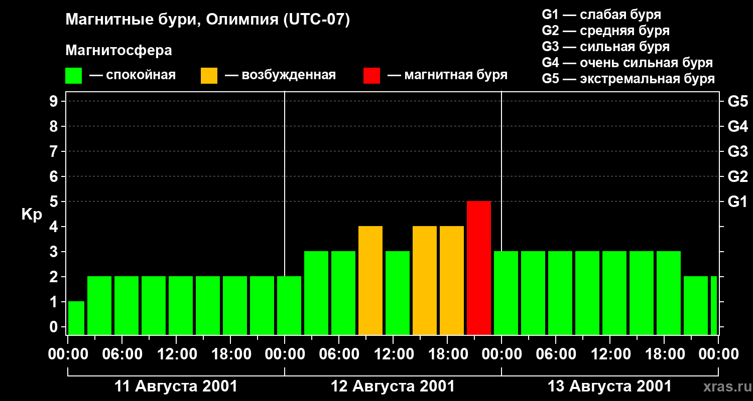 Магнитные бури в Олимпии — 13 августа 2001 года