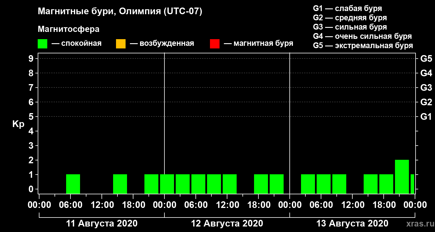 Магнитные бури в Олимпии 13 августа 2020 года