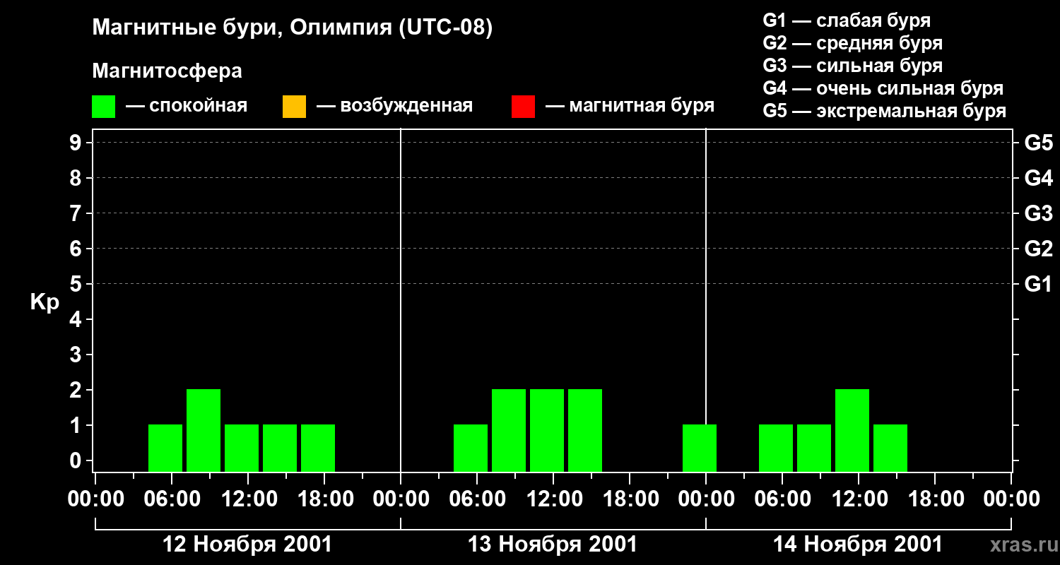 Магнитные бури в Олимпии 14 ноября 2001 года