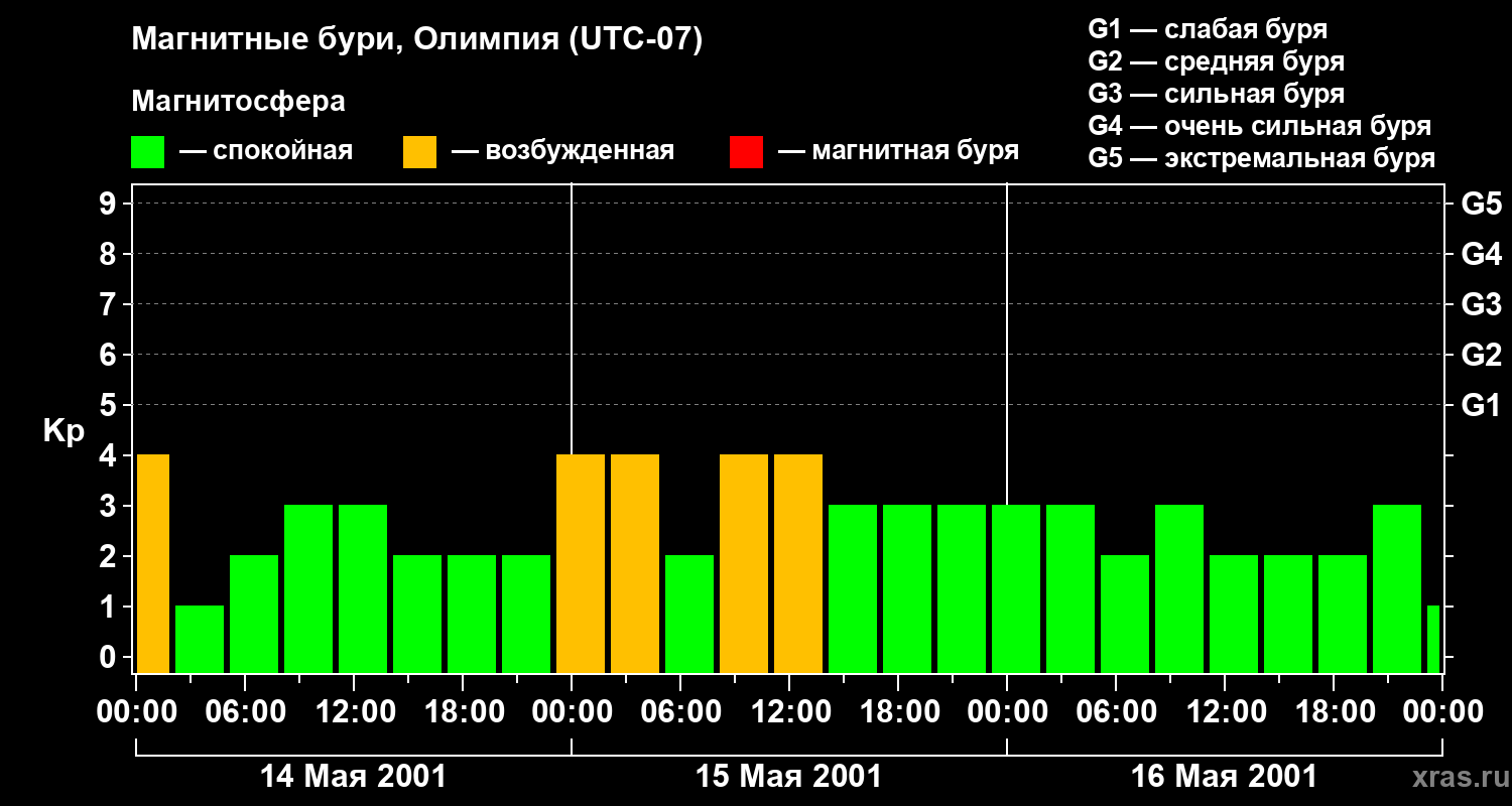 Магнитные бури в Олимпии — 16 мая 2001 года