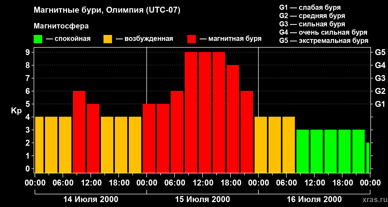 Магнитные бури в Олимпии — 16 июля 2000 года