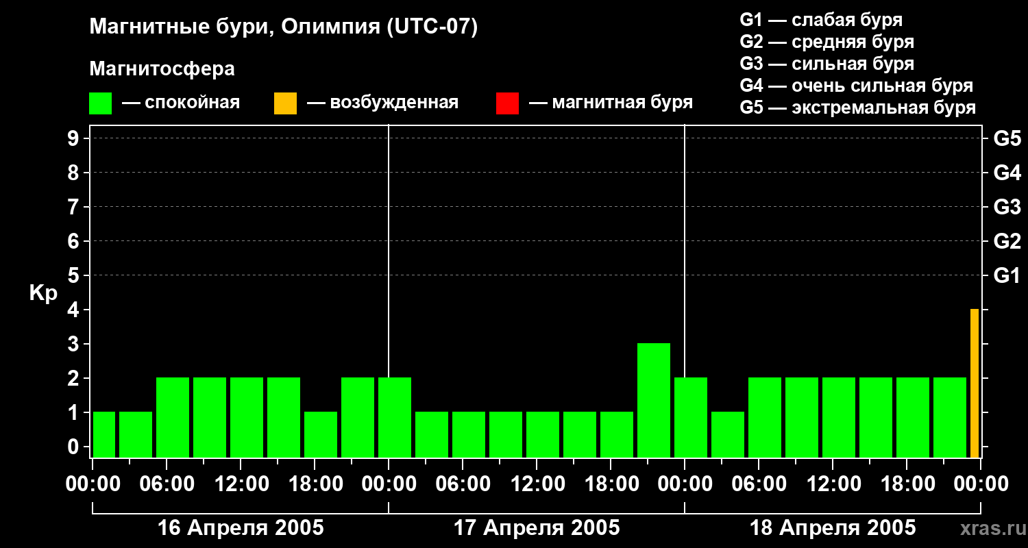Магнитные бури в Олимпии — 18 апреля 2005 года